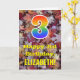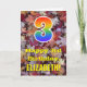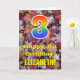 L'avant de cette carte de voeux d'anniversaire colorée, rustique et d'inspiration nature présente un grand nombre de "3" avec un motif inspiré par un gradient de spectre arc-en-ciel, ainsi que le message "Happy 3rd Birthday," et un nom modifiable. L'avant est ornée d'un arrière - plan représentant des feuilles d'automne tombées rustiques. L'intérieur comporte un message de voeux d'anniversaire personnalisable, ou peut-être pourrait-il être effacé et laissé vide si un message doit être écrit à la main à la place. Une carte d'anniversaire personnalisée comme celle-ci pourrait être une façon amusante d'envoyer des voeux d'anniversaire à quelqu'un qui célèbre son troisième anniversaire. [~Z0000384]