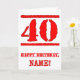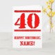 Cette carte de voeux amusante à thème d'anniversaire comporte un grand numéro rouge "40" avec un look inspiré par un timbre en caoutchouc, ainsi que le message de voeux d'anniversaire "HAPPY BANTHDAY", et un nom personnalisé sur le devant. L'intérieur a un message de voeux d'anniversaire modifiable, ou peut-être peut-être être effacé et laissé vide si un message doit être écrit à la main à la place. Une carte de voeux d'anniversaire customisée comme celle-ci pourrait être une façon amusante d'envoyer des voeux d'anniversaire à quelqu'un qui célèbre son quarantième anniversaire. [~Z0000524]