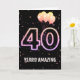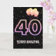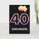 Ballons de fête et confettis sur arrière - plan noir avec le néon numéro 40 pour un 40e anniversaire.
