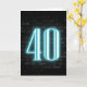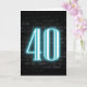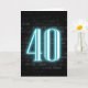 Panneau de néon turquoise brillant sur un mur de briques foncées pour un 40ème anniversaire.