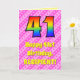 L'avant de cette carte de voeux joyeuse et amusante de 41e anniversaire a un grand numéro "41" avec un motif dégradé coloré inspiré du spectre arc-en-ciel. Il comporte également le message "Joyeux 41e anniversaire", ainsi qu'un nom de destinataire personnalisé. L'arrière - plan de l'avant est doté d'un motif à rayures rose foncé et rose clair, aux coeurs roses aimés. L'intérieur comporte un message de voeux d'anniversaire customisé, ou peut-être pourrait-il être effacé et laissé vide si un message doit être écrit à la main à la place. Une carte d’anniversaire personnalisée comme celle-ci pourrait être une façon amusante d’envoyer un message pour célébrer le quarante et unième anniversaire de quelqu’un. [~Z0000416]