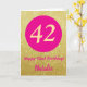 42nd Happy Birthday Hot Pink and Gold Glitter Card with personalized name. For further customization, please click the "Customize it" button and use our design tool to modify this template.
