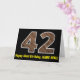 La façade de cette carte de voeux amusante et rustique d'anniversaire avec un grand nombre de "42" ayant une imitation motif d'apparence inspirée du grain de bois, avec le message "Happy 42nd Birthday,", et un nom personnalisé. L'intérieur comporte un message de voeux d'anniversaire personnalisable, ou peut-être pourrait-il être effacé et laissé vide si un message doit être écrit à la main à la place. Une carte d’anniversaire personnalisable comme celle-ci pourrait être une façon amusante de reconnaître le quarante-deuxième anniversaire de quelqu’un. [~Z0000431]