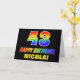 La façade de cette carte de voeux amusante, joyeuse et colorée à thème d'anniversaire comporte un grand numéro "43" et le message "HAPPY BANTHDAY", tous deux colorés avec un motif inspiré par un gradient de spectre arc-en-ciel, avec un nom de destinataire personnalisé jaune gras. L'avant est également orné d'un arrière - plan simple, clair et noir. L'intérieur a un message de voeux d'anniversaire modifiable, ou peut-être peut-être être effacé et laissé vide si un message doit être écrit à la main à la place. Une bonne carte d’anniversaire personnalisable comme celle-ci pourrait être une façon amusante d’envoyer un message célébrant le quarante-troisième anniversaire de quelqu’un. [~Z0000472]