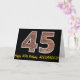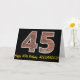 La façade de cette carte de voeux thématique anniversaire comporte un grand numéro "45" avec un motif en brique rougeâtre, ainsi que le message "Joyeux 45e anniversaire", et un nom personnalisé. L'intérieur comporte un message de voeux d'anniversaire customisé, ou peut-être pourrait-il être effacé et laissé vide si un message doit être écrit à la main à la place. Une carte d’anniversaire personnalisée comme celle-ci pourrait être une façon amusante d’envoyer un message pour célébrer le quarante-cinquième anniversaire de quelqu’un. [~Z0000399]