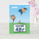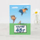 Voici une drôle de carte d'anniversaire de dessin animé pour quelqu'un qui est sur le point d'avoir le coup de pied dans le cul qui vient avec avoir un 45ème anniversaire. Merci pour le choix de cette conception originale par © Chuck Ingwersen. Je suis un artiste indépendant, et je publie des dessins presque tous les jours sur Instagram : https://www.instagram.com/captainscratchy