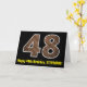La façade de cette carte de voeux rustique et amusante à thème d'anniversaire comporte un grand numéro "48" avec un motif de style imitation grain de bois, avec le message "Happy 48th Birthday," et un nom modifiable. L'intérieur comporte un message de voeux d'anniversaire personnalisable, ou peut-être pourrait-il être effacé et laissé vide si un message doit être écrit à la main à la place. Une carte d’anniversaire personnalisée comme celle-ci pourrait être une façon amusante d’envoyer un message pour célébrer le quarante-huitième anniversaire de quelqu’un. [~Z0000431]