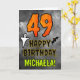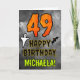 Le devant de cette carte de voeux d'anniversaire à thème Halloween éffrayant et effrayant comporte un grand nombre de "49". Il comporte également le message "HAPPY BANTHDAY", et un nom personnalisé. Il y a aussi des représentations d'une chauve-souris et d'un fantôme sur le devant. L'intérieur comporte un message de voeux d'anniversaire personnalisé, ou peut-être pourrait-il être effacé et laissé vide si un message doit être écrit à la main à la place. Une carte d’anniversaire personnalisable comme celle-ci pourrait être une façon amusante de reconnaître le quarante-neuvième anniversaire de quelqu’un qui tombe aussi sur Halloween (31 octobre). [~Z0000547]