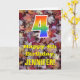 La face avant de cette conception de carte de vœux d'anniversaire colorée, inspirée de la nature et rustique, présente un grand chiffre "4" ayant un motif dégradé à spectre arc-en-ciel. Elle comporte également le message "Joyeux 4ème anniversaire" et un nom personnalisé. Le devant présente un fond représentant des feuilles d'automne tombées rustiques. L'intérieur comporte un message de vœux d'anniversaire personnalisé, ou pourrait éventuellement être laissé en blanc si un message doit être écrit à la main à la place. Une carte d'anniversaire personnalisée comme celle-ci pourrait être un moyen amusant d'envoyer des vœux d'anniversaire à quelqu'un qui célèbre son quatrième anniversaire.
