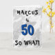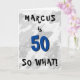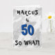 50 donc ce Citation drôle et nom Blue 50th Birthday Card. Arrière - plan abstrait gris avec une amusante typographie noire et bleue. Une grande carte de voeux drôle et inspirante pour homme ou femme, célébrant le 50e anniversaire. Il vient avec une citation drôle 50 alors quoi, et est parfait pour une personne avec un sens de l'humour - personnalisez avec votre nom. Customisez avec votre message à l'intérieur, laissez ou effacez le texte.