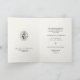 Célébrez le 50e anniversaire d'ordination d'un prêtre avec ce dessin sacré à thème eucharistique. Avec une œuvre d'art en or antique représentant le calice, l'hostie, le blé et les raisins sur fond bleu foncé, cette carte pliée honore la dignité du sacerdoce. L'intérieur comprend un message traditionnel d'action de grâce, un passage des Écritures tiré du Psaume 110:4, et la phrase latine Ad Majorem Dei Gloriam. Un souvenir parfait pour la messe du Jubilé d'or d'un prêtre, une réception ou un bouquet spirituel.