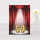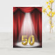 Gold 50th Birthday sous les projecteurs avec des rideaux rouges.