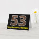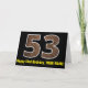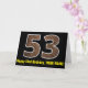 La façade de cette carte de voeux amusante et rustique d'anniversaire avec un grand numéro "53" avec un motif imitation grain de bois inspiré, avec le message "Happy 53rd Birthday," et un nom personnalisable. L'intérieur comporte un message de voeux d'anniversaire customisé, ou peut-être pourrait-il être effacé et laissé vide si un message doit être écrit à la main à la place. Une carte d'anniversaire personnalisée comme celle-ci pourrait être une façon amusante d'envoyer des voeux d'anniversaire à quelqu'un qui célèbre son cinquante-troisième anniversaire. [~Z0000431]