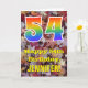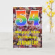 La façade de cette carte de voeux d'anniversaire colorée, rustique et d'automne comporte un grand nombre de "54" ayant un motif inspiré par un gradient de spectre arc-en-ciel. Il comporte également le message "Joyeux 54e anniversaire", et un nom personnalisé. L'arrière - plan de l'avant de la carte présente une chute rustique feuilles automne motif. L'intérieur comporte un message de voeux d'anniversaire modifiable, ou peut-être pourrait-il être effacé et laissé vide si un message doit être écrit à la main à la place. Une carte d’anniversaire personnalisable comme celle-ci pourrait être une façon amusante d’envoyer un message pour célébrer le cinquante-quatrième anniversaire de quelqu’un. [~Z0000384]