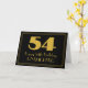 Cette carte de vœux à l'occasion d'un anniversaire de style et d'apparence vintage inspirés des années 1920/1930 présente un grand numéro « 54 » inspiré de l'art déco, le message « Joyeux 54e anniversaire », un nom modifiable et un motif de bordure composé de fines lignes sur le devant. Le fond de la face avant est de couleur noire. L'intérieur comporte un message de vœux d'anniversaire personnalisé, ou pourrait éventuellement être effacé et laissé vide si un message doit être écrit à la main à la place. Une carte d'anniversaire personnalisée comme celle-ci pourrait être utilisée pour souhaiter un joyeux anniversaire à quelqu'un pour son cinquante-quatrième anniversaire.