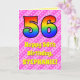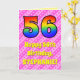 L'avant de cette carte de voeux amusante et joyeuse à 56ème anniversaire de conception de carte de voeux avec un grand numéro "56" avec un motif coloré inspiré par l'aspect d'un arc-en-ciel spectre. Il comporte également le message "Joyeux 56e anniversaire", et un nom de destinataire modifiable. L'arrière - plan de l'avant est doté d'un motif rayé rose clair et rose foncé, aux coeurs roses aimés. L'intérieur comporte un message de voeux d'anniversaire modifiable, ou peut-être pourrait-il être effacé et laissé vide si un message doit être écrit à la main à la place. Une carte d’anniversaire personnalisée comme celle-ci pourrait être une façon amusante de souligner le cinquante-sixième anniversaire de quelqu’un. [~Z0000416]