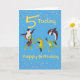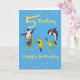 Une belle carte de plaisir pour tout enfant de 5 ans avec manchot dansant, baleine, tortue, crocodile et grenouille.