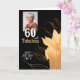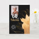 Elégant 60 et Fabulous Foliage 60e Carte photo d'anniversaire. 60 et texte fabuleux en écriture blanche tendance avec un nom et feuillage doré sur un arrière - plan noir. Personnalisez-le avec votre photo, votre nom et l'âge. Ajoutez votre texte à l'intérieur de la carte ou effacez-le.