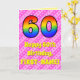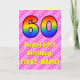L'avant de cette carte de voeux joyeuse et amusante de 60e anniversaire de conception dispose d'un grand nombre de "60" avec un motif coloré du spectre arc-en-ciel inspiré de dégradé. Il comporte également le message "Joyeux 60e anniversaire", suivi d'un nom de destinataire personnalisé. L'arrière - plan de l'avant présente un joyeux motif de rayures rose foncé et rose clair, aux coeurs roses aimés. L'intérieur comporte un message d'anniversaire personnalisé, ou pourrait être effacé et laissé vide si un message doit être écrit à la main à la place. Une carte d’anniversaire personnalisée comme celle-ci pourrait être une façon amusante de souligner le soixantième anniversaire de quelqu’un. [~Z0000416]