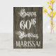 L'avant de ce design opulent et orné de cartes de voeux d'anniversaire comporte le message "Joyeux 60e anniversaire", dans un texte de style script luxueux. L'avant comporte également un nom de destinataire modifiable, et un motif arrière - plan d'apparence imitation bois. L'intérieur a un message de voeux d'anniversaire customisé, ou peut-être peut-être être effacé et laissé vide si un message doit être écrit à la main à la place. Une carte de voeux d'anniversaire customisée comme celle-ci pourrait être un moyen respectable de faire des voeux d'anniversaire à quelqu'un qui célèbre son soixantième anniversaire. [~Z0000556]