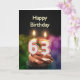 Un gâteau d'anniversaire avec des bougies. Les bougies sont composées du numéro 63, pour un 63ème anniversaire. Une carte d'anniversaire adaptée à tous.