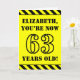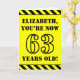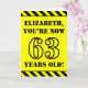 Le recto de cette carte de voeux amusante et attrayante d’anniversaire comporte un nom personnalisé et le message "VOUS AVEZ MAINTENANT 63 ANS!" en texte de style pochoir noir sur un arrière - plan de couleur jaune. L'avant est également orné d'un motif rayé jaune et noir accrocheur aux bords supérieur et inférieur. L'intérieur comporte un message d'anniversaire personnalisé, ou pourrait être effacé et laissé vide si un message doit être écrit à la main à la place. Une carte d'anniversaire personnalisée comme celle-ci pourrait être une façon amusante d'envoyer des voeux d'anniversaire à quelqu'un qui célèbre son soixante-troisième anniversaire. [~Z0000413]
