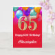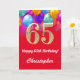 65e Anniversaire Ballons rouge et or couleur carte d'anniversaire. Pour plus de personnalisation, cliquez sur le bouton "Customiser" et utilisez notre outil de conception pour modifier ce modèle.