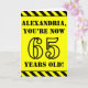 Le devant de cette carte de voeux audacieuse et amusante à thème d’anniversaire comporte un nom personnalisé et le message "VOUS AVEZ MAINTENANT 65 ANS !" en texte de pochoir noir sur un arrière - plan de couleur jaune. Il y a aussi un motif rayé jaune et noir accrocheur aux bords supérieur et inférieur de l'avant. L'intérieur comporte un message de voeux d'anniversaire customisé, ou peut-être pourrait-il être effacé et laissé vide si un message doit être écrit à la main à la place. Une carte d’anniversaire personnalisée comme celle-ci pourrait être une façon amusante d’envoyer un message pour célébrer le soixante-cinquième anniversaire de quelqu’un. [~Z0000413]
