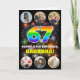 Le devant de cette carte de voeux passionnante et amusante à thème d'anniversaire comprend un grand nombre de "67" ayant un motif dynamique du spectre arc-en-ciel inspiré, avec le message "HAPPY 67th BIRTHDAY", et un nom modifiable, sur un motif multicolore éclatant feux d'artifice inspiré. Près du haut et du bas de l’avant se trouvent des images qui peuvent être customisées, peut-être avec des photos de la famille et des amis du bénéficiaire. L'intérieur a un message de voeux d'anniversaire personnalisable, ou peut-être peut-être être effacé et laissé vide si un message doit être écrit à la main à la place. Une carte de voeux d'anniversaire amusante et personnalisée comme celle-ci pourrait être une façon amusante de transmettre des voeux d'anniversaire à quelqu'un qui célèbre son soixante-septième anniversaire. (Photographie © Storytree Studios, Stanford, CA.) [~Z0000660]