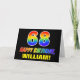 L'avant de cette carte de voeux d'anniversaire joyeuse, colorée et amusante comporte un grand nombre de "68" et le message "HAPPY BANTHDAY", tous deux dotés d'un dégradé arc-en-ciel inspiré colorant motif, ainsi qu'un nom de destinataire personnalisé jaune gras. L'avant a aussi un arrière - plan noir clair. L'intérieur a un message de voeux d'anniversaire personnalisable, ou peut-être peut-être être effacé et laissé vide si un message doit être écrit à la main à la place. Une carte d’anniversaire personnalisée colorée comme celle-ci pourrait être une façon amusante d’envoyer un message pour célébrer le soixante-huitième anniversaire de quelqu’un. [~Z0000472]