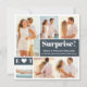 Tout le monde adorera voir vos photos de fiançailles. Cette annonce de fiançailles en collage de 6 photos vous donne une excellente occasion de les montrer. Les deux carrés gris charbon contiennent votre texte. Tout le texte blanc peut être modifié pour créer votre touche unique. J'ai ajouté un Surprise! amusant. Puis deux lignes de texte dans le grand carré dans le plus petit, j'ai inséré vos initiales séparées par un cœur.