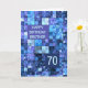 Carte de 70e anniversaire pour un frère. Souhaitez un joyeux anniversaire avec une carte élégante. Les carrés bleus et violets se combinent pour créer une carte d'anniversaire masculine et cool.