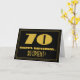 L'avant de cette carte de voeux de style vintage est ornée d'un grand style art déco inspiré du numéro "70", du message "HAPPY BANTHDAY", d'un nom personnalisé et d'un motif frontalier composé de lignes. Il y a un arrière - plan noir sur le devant. L'intérieur comporte un message de voeux d'anniversaire personnalisé, ou peut-être pourrait-il être effacé et laissé vide si un message doit être écrit à la main à la place. Une carte d’anniversaire personnalisée comme celle-ci pourrait être une façon amusante de souligner le soixante-dixième anniversaire de quelqu’un. [~Z0000506]