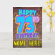 Le recto de cette carte de voeux amusante à thème d'anniversaire comporte le message "HAPPY 73RD BIRTHDAY", ayant une apparence vibrante, colorée, inspirée du graffiti, en plus d'un nom de destinataire personnalisé. L'arrière - plan de l'avant est décoré d'un motif d'inspiration mural en brique. L'intérieur a un message d'anniversaire personnalisé, ou peut-être peut-être être effacé et laissé vide si un message doit être écrit à la main à la place. Une carte de voeux d’anniversaire amusante et personnalisée comme celle-ci pourrait être envoyée pour célébrer le soixante-treizième anniversaire de quelqu’un. [~Z0000531]