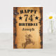 74th Birthday Rustic Country Western Cowboy Horse Card avec nom et âge personnalisés. Pour plus de personnalisation, cliquez sur le bouton "Customiser" et utilisez notre outil de conception pour modifier ce modèle.