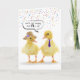 Canards jaunes mignons avec bulle vocale et confettis de fête sur un arrière - plan blanc pour 75ème anniversaire. Le canard porte une ficelle de perles et un bonnet. Le petit canard porte une cravate rayée. Tout le texte peut être modifié. L'âge est modifiable. La couleur Arrière - plan peut être modifiée.