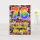 L'avant de cette carte de voeux d'anniversaire colorée, rustique et d'inspiration nature présente un grand nombre de "76" ayant un motif inspiré par un gradient de spectre arc-en-ciel. Il comporte également le message "Joyeux 76ème anniversaire", et un nom modifiable. L'avant est ornée d'un arrière - plan représentant des feuilles d'automne tombées rustiques. L'intérieur comporte un message de voeux d'anniversaire customisé, ou peut-être pourrait-il être effacé et laissé vide si un message doit être écrit à la main à la place. Une carte d’anniversaire personnalisée comme celle-ci pourrait être une façon amusante d’envoyer un message pour célébrer le soixante-seizième anniversaire de quelqu’un. [~Z0000384]