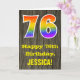 La façade de cette carte de voeux d'anniversaire colorée mais rustique comporte un grand numéro "76" avec un motif inspiré par un gradient de spectre arc-en-ciel, ainsi que le message "Happy 76th Birthday," et un nom de destinataire personnalisé. L'avant est ornée d'un arrière - plan représentant un motif rustique de style simili bois. L'intérieur comporte un message de voeux d'anniversaire customisé, ou peut-être pourrait-il être effacé et laissé vide si un message doit être écrit à la main à la place. Une carte d’anniversaire personnalisée comme celle-ci pourrait être une façon amusante de célébrer le soixante-seizième anniversaire de quelqu’un. [~Z0000419]