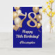 78e Anniversaire Marine Blue and Gold Balloons Confetti Card. Pour plus de personnalisation, cliquez sur le bouton "Customiser" et utilisez notre outil de conception pour modifier ce modèle.