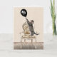 Chatte de tabby gris qui tend vers un ballon noir sur une chaise à l'ancienne pour 79e anniversaire. Le texte peut être modifié à n'importe quel âge.