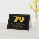 Cette conception de carte de vœux à thème d'anniversaire inspirée de l'apparence vintage et du style des années 1920-1930 comporte un grand numéro « 79 » inspiré de l'art déco, le message « Joyeux 79e anniversaire », un nom modifiable et un motif de bordure composé de fines lignes sur le devant. Le fond de la face avant est de couleur noire. L'intérieur comporte un message de vœux d'anniversaire personnalisé ou pourrait éventuellement être effacé et laissé vide si un message doit être écrit à la main à la place. Une carte de vœux d'anniversaire personnalisable comme celle-ci pourrait être envoyée pour célébrer le soixante-dix-neuvième anniversaire de quelqu'un.