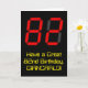 La façade de cette carte de voeux idiote et nerveuse à thème d'anniversaire comporte un grand numéro "82" avec un affichage numérique à sept segments rouge inspiré, ainsi que le message "Avoir un grand 82e anniversaire", et un nom personnalisé, sur un arrière - plan de couleur noire. L'intérieur comporte un message de voeux d'anniversaire modifiable, ou peut-être pourrait-il être effacé et laissé vide si un message doit être écrit à la main à la place. Une carte d’anniversaire personnalisable comme celle-ci pourrait être une façon amusante de reconnaître le quatre-vingt-deuxième anniversaire de quelqu’un. [~Z0000386]