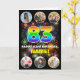 L'avant de cette carte de voeux audacieuse et passionnante à thème d'anniversaire comporte un grand nombre de "83" ayant un motif coloré à spectre arc-en-ciel inspiré du gradient, avec le message "HAPPY 83rd BIRTHDAY", et un nom modifiable, sur un motif multicolore d'éclatement des feux d'artifice inspiré. Près du haut et du bas de l’avant se trouvent des images qui peuvent être customisées, peut-être avec des photos de la famille et des amis du bénéficiaire. L'intérieur comporte un message d'anniversaire personnalisé, ou pourrait être effacé et laissé vide si un message doit être écrit à la main à la place. Une carte de voeux d’anniversaire amusante et personnalisée comme celle-ci pourrait être utilisée pour célébrer le quatre-vingt-troisième anniversaire de quelqu’un. (Photographie © Storytree Studios, Stanford, CA.) [~Z0000660]
