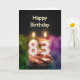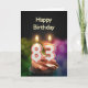 Un gâteau d'anniversaire avec des bougies. Les bougies sont composées du numéro 83, pour un 83ème anniversaire. Une carte d'anniversaire adaptée à tous.