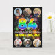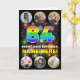 L'avant de cette carte de voeux d'anniversaire joyeuse et optimisée comprend un grand numéro "84" avec un motif dégradé multicolore inspiré du spectre arc-en-ciel, avec le message "HAPPY 84th BIRTHDAY", et un nom personnalisé, sur un motif multicolore inspiré par les feux d'artifice. En haut et en bas de l’avant se trouvent des images qui peuvent être customisées, peut-être avec des photos de la famille et des amis du bénéficiaire. L'intérieur a un message de voeux d'anniversaire modifiable, ou peut-être peut-être être effacé et laissé vide si un message doit être écrit à la main à la place. Une carte de voeux amusante et customisée comme celle-ci pourrait être envoyée pour célébrer le quatre-vingt-quatrième anniversaire de quelqu’un. (Photographie © Storytree Studios, Stanford, CA.) [~Z0000660]
