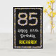 La façade de cette carte de voeux amusante et d'inspiration nature, comporte le message "Happy 85th Birthday", ainsi qu'un nom de destinataire personnalisé. Le grand numéro "85" et la bordure à l'avant comportent tous deux des icônes de fleurs. L'intérieur comporte un message de voeux d'anniversaire customisé, ou peut-être pourrait-il être effacé et laissé vide si un message doit être écrit à la main à la place. Une carte de voeux d'anniversaire fleurie et modifiable comme celle-ci pourrait être une façon amusante de transmettre un message d'anniversaire à quelqu'un qui célèbre son quatre-vingt-cinquième anniversaire. [~Z0000648]