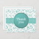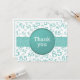 The modern numeric design is a teal and white random number pattern with a teal milestone number 85 repeated in varied sizes and angles over a white background. There is a circle in the center for your thank-you text.