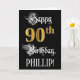 Le devant de cette carte de voeux fantaisie et généreuse à thème d'anniversaire comporte le message "Joyeux 90e anniversaire", et un nom de destinataire modifiable. Une partie du message est dans un texte orné de style script, le grand numéro "90th" dispose d'un faux/imitation motif de look d'inspiration or, et l'arrière - plan est coloré en noir. L'intérieur a un message de voeux d'anniversaire personnalisé, ou peut-être peut-être être effacé et laissé vide si un message doit être écrit à la main à la place. Une carte de voeux d'anniversaire luxueuse et modifiable comme celle-ci pourrait être un moyen respectable d'envoyer des voeux d'anniversaire à quelqu'un qui célèbre son quatre-vingt-dixième anniversaire. [~Z0000559]