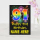 Carte 91e anniversaire : Fun Fireworks Motif + Rainbow 9