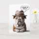 Un bulldog est assis tranquillement en portant un casquette fedora élégant isolé sur un arrière - plan blanc pour un 95ème anniversaire. Tout le texte peut être modifié et l'âge.